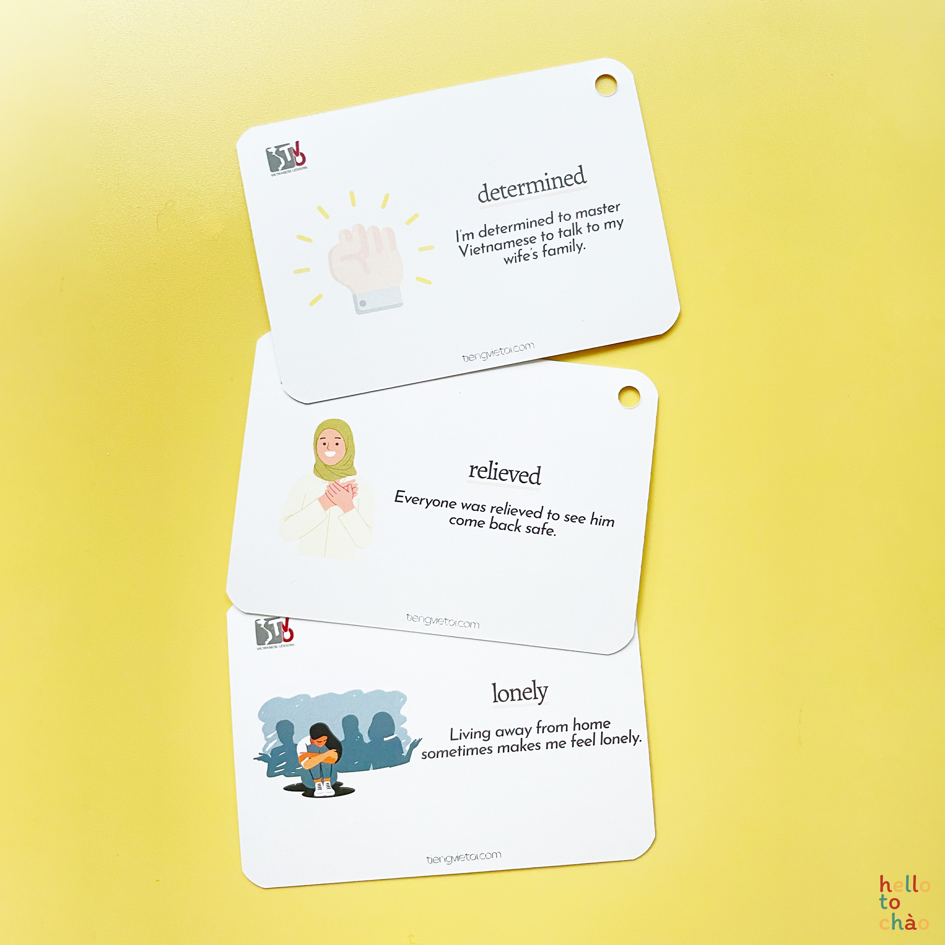Learn Vietnamese feelings & emotions vocabulary with these awesome double sided Vietnamese flashcards from Tiếng Việt Ơi - a well-known Vietnamese language school which has been around since 2013.